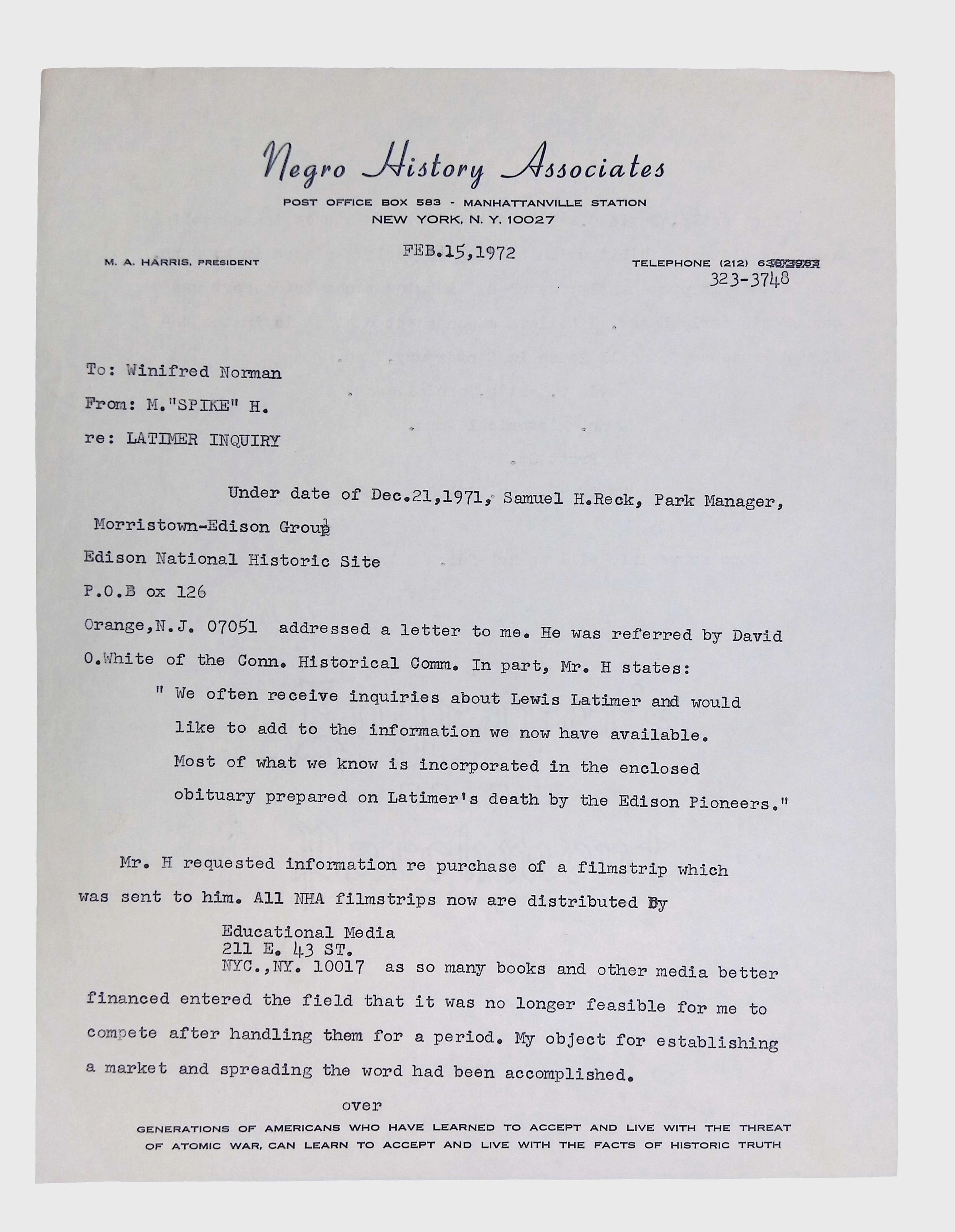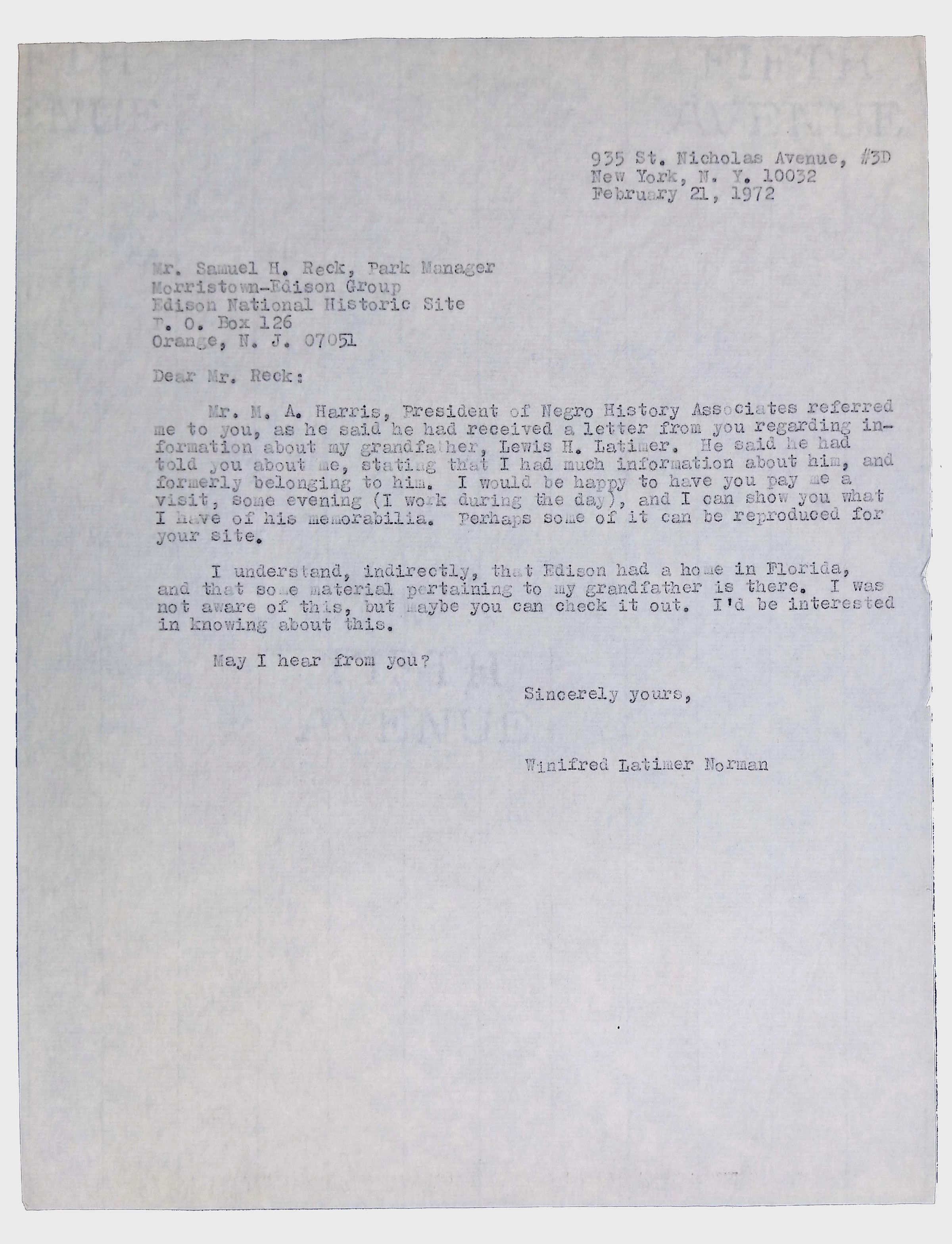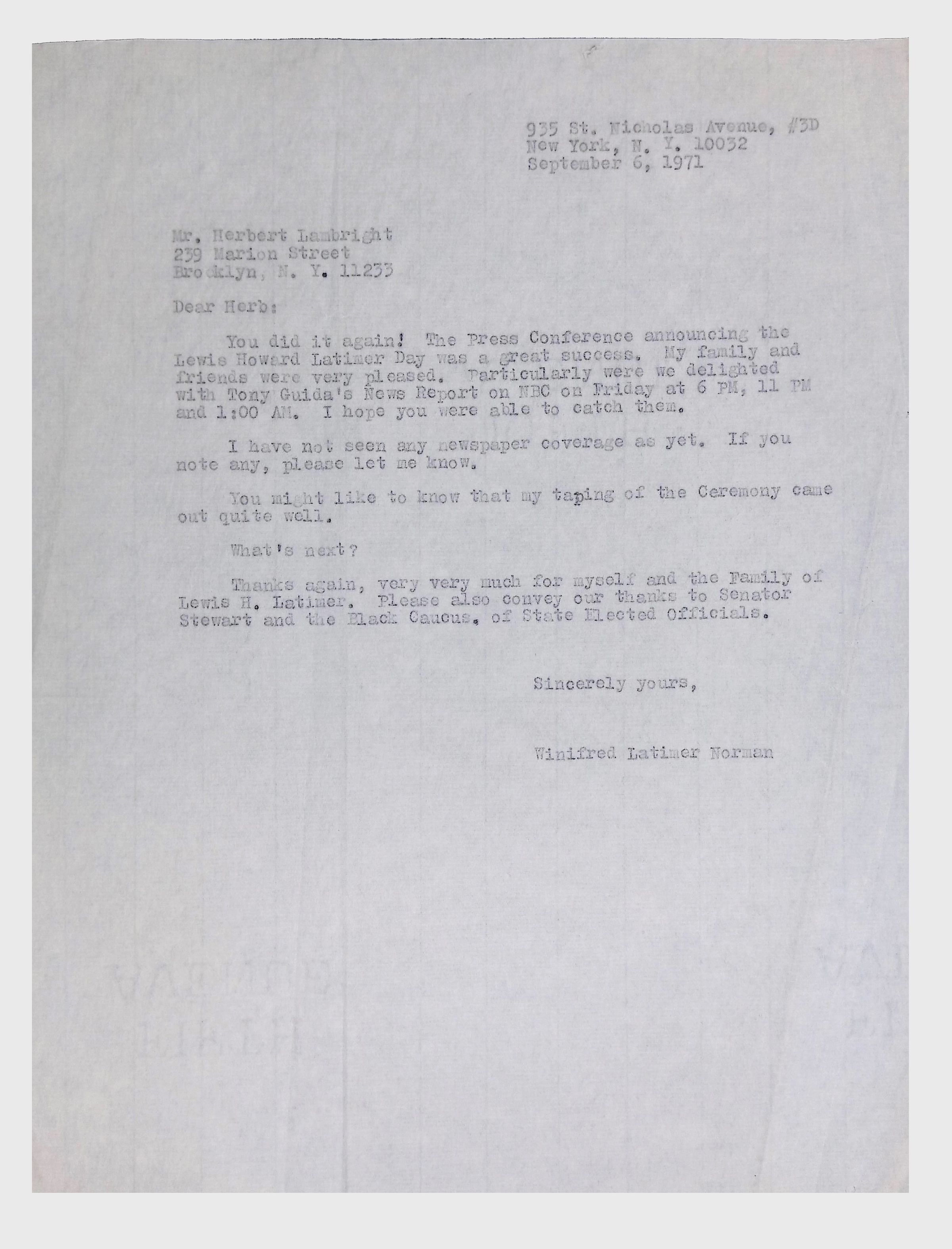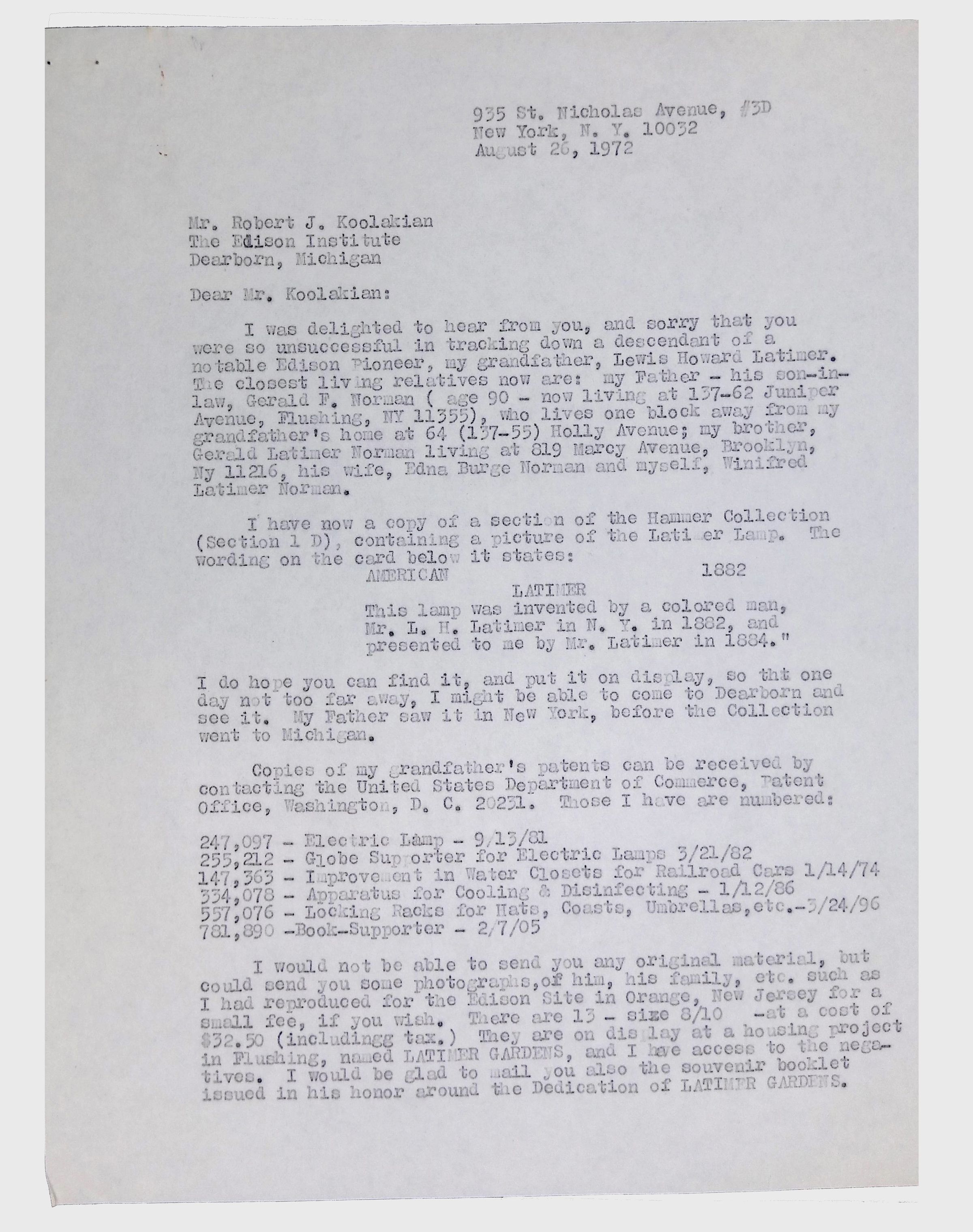 Folder 383/2 is part of Box 383 in the archival collection. It continues the documentation of Lewis Latimer's life, including his work with Edison, his contributions to electrical engineering, and the recognition he received posthumously. The documents reflect both contemporary and historical perspectives on his impact, in the context of campaigns during the 1960s and 1970s to preserve, retrieve, and acknowledge African American history.