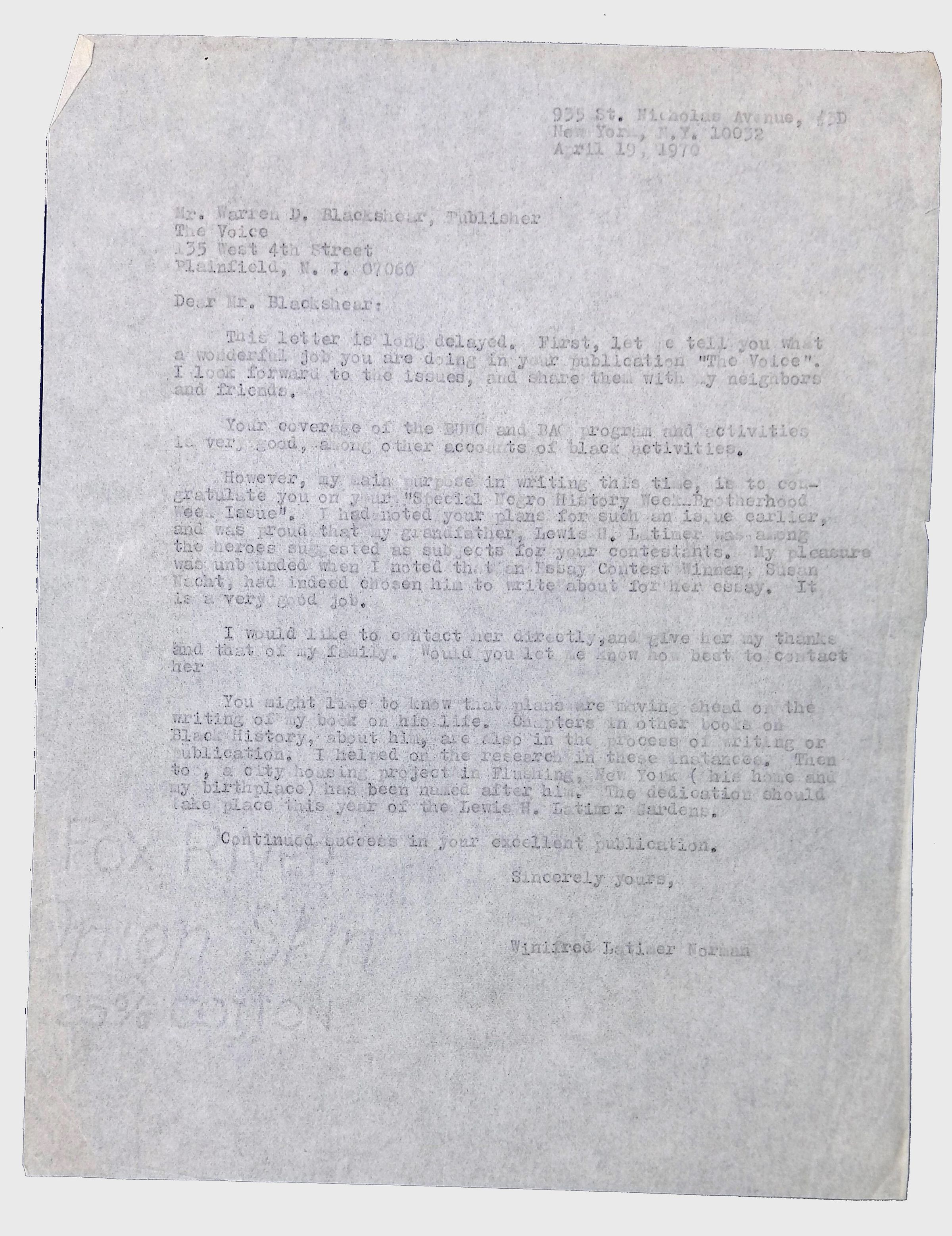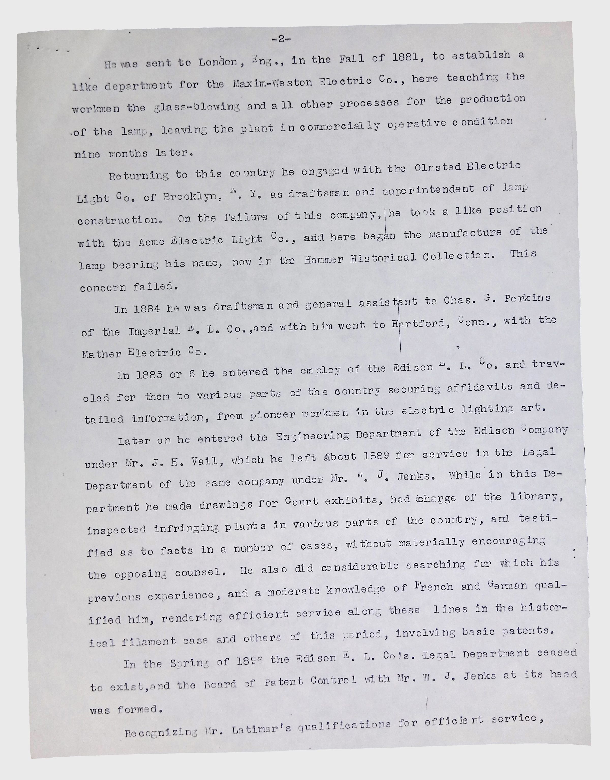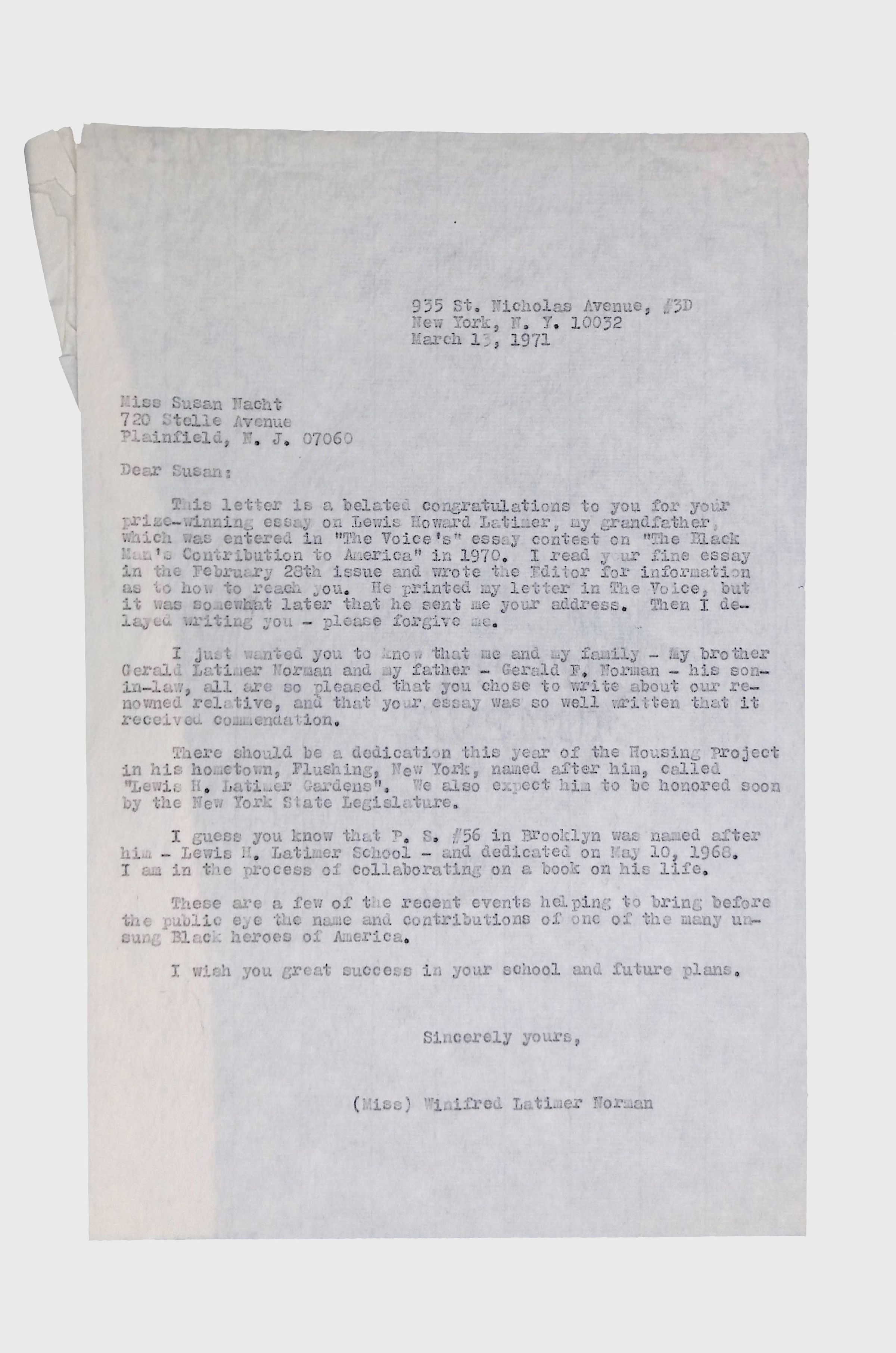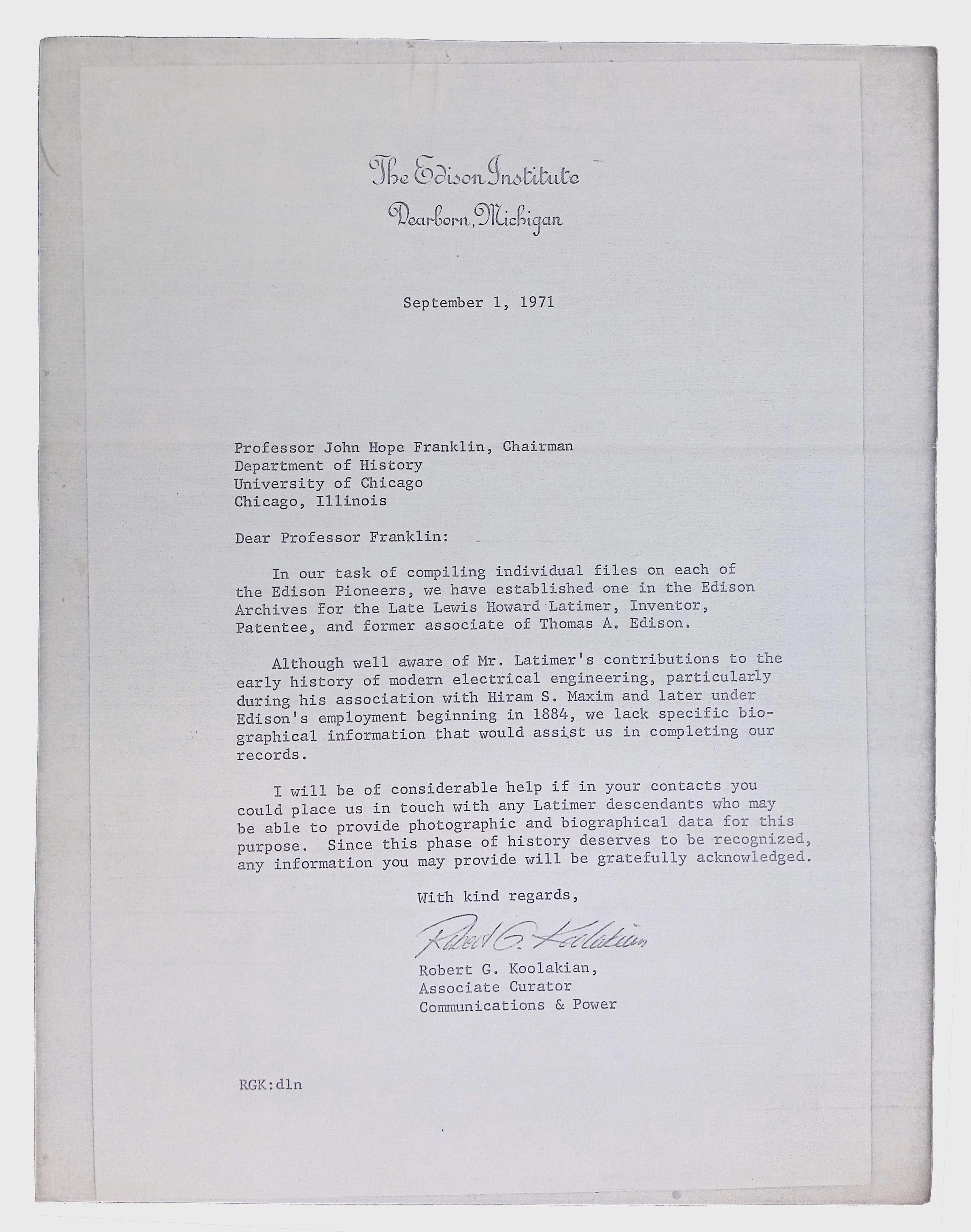 Folder 383/2 is part of Box 383 in the archival collection. It continues the documentation of Lewis Latimer's life, including his work with Edison, his contributions to electrical engineering, and the recognition he received posthumously. The documents reflect both contemporary and historical perspectives on his impact, in the context of campaigns during the 1960s and 1970s to preserve, retrieve, and acknowledge African American history.
