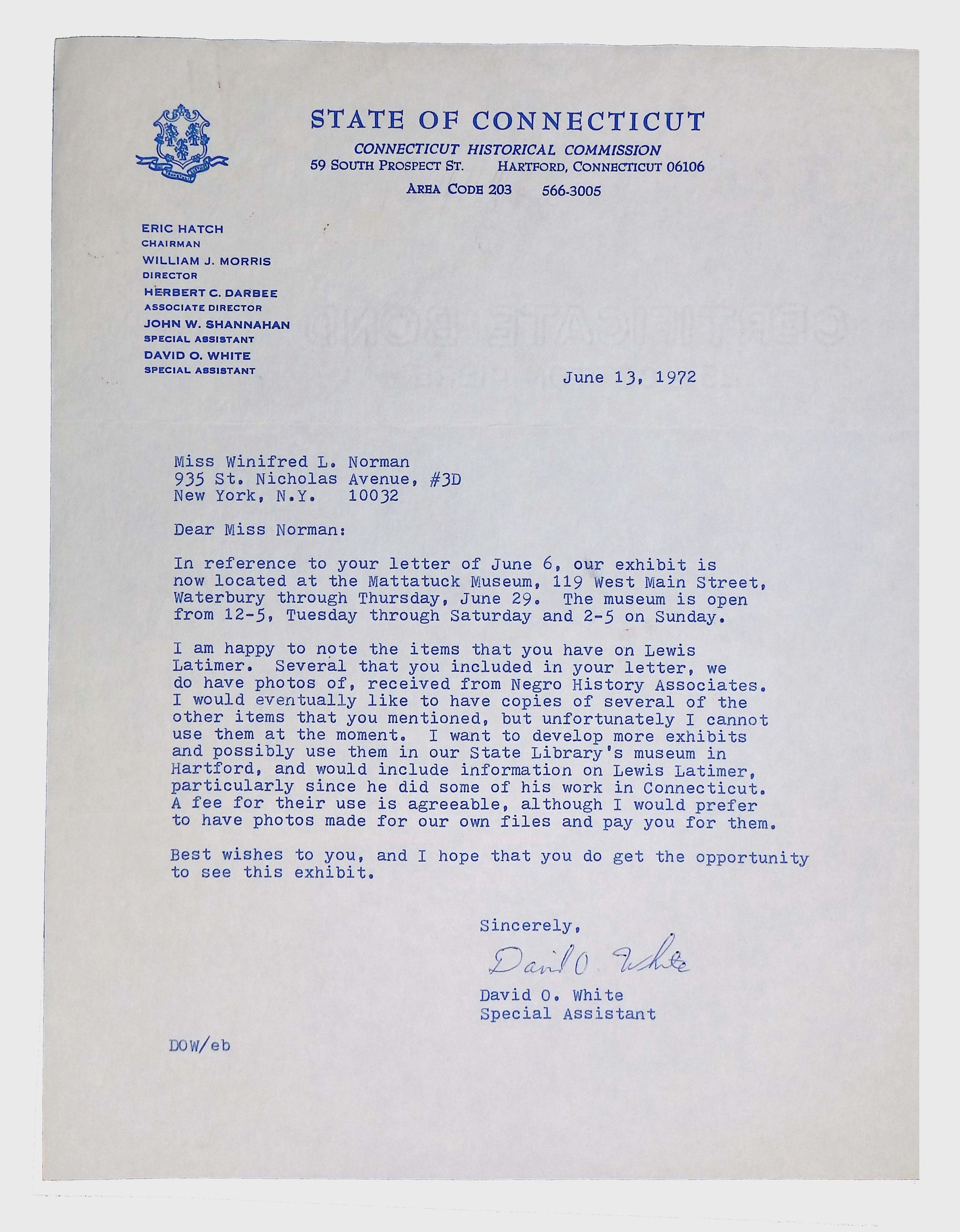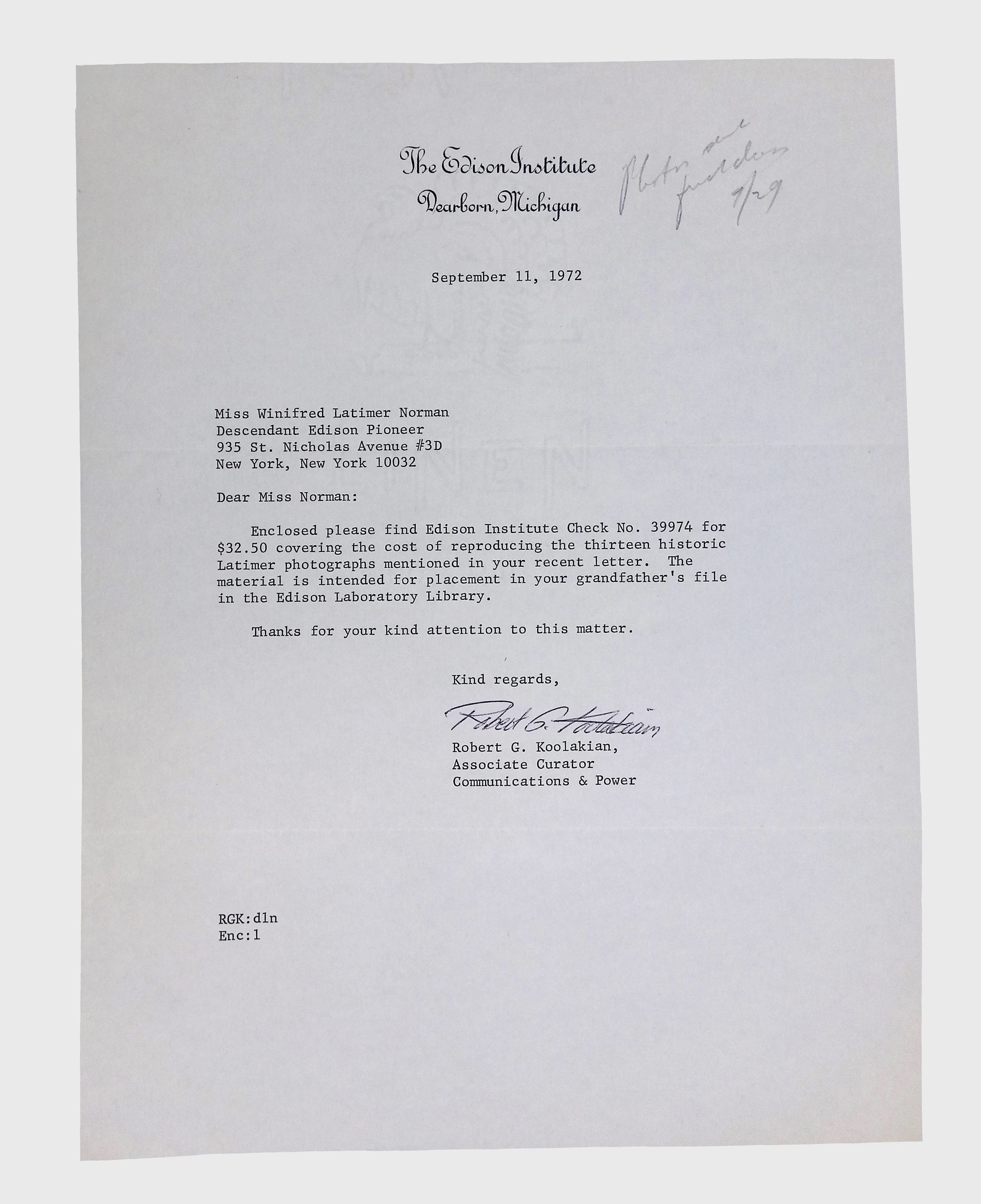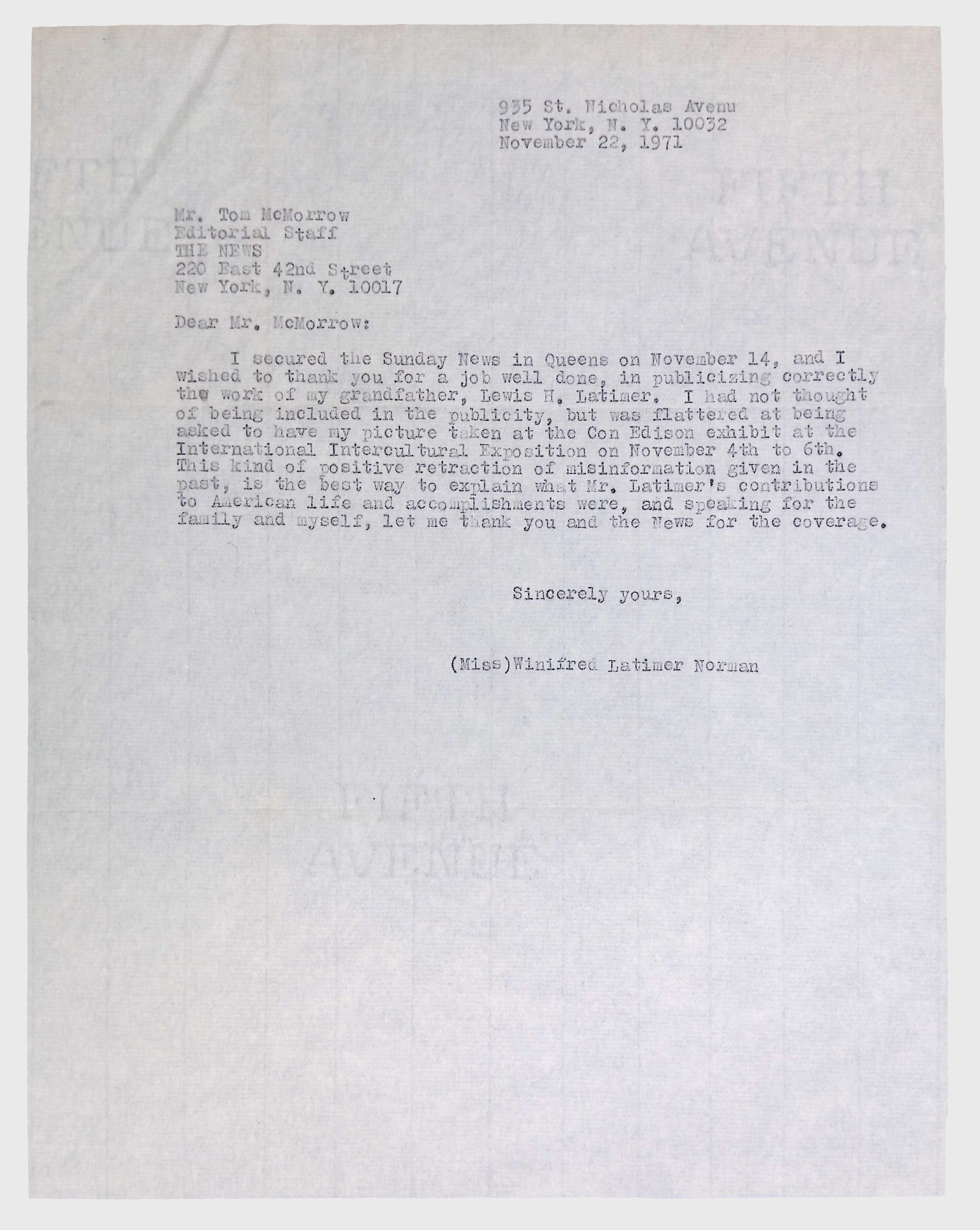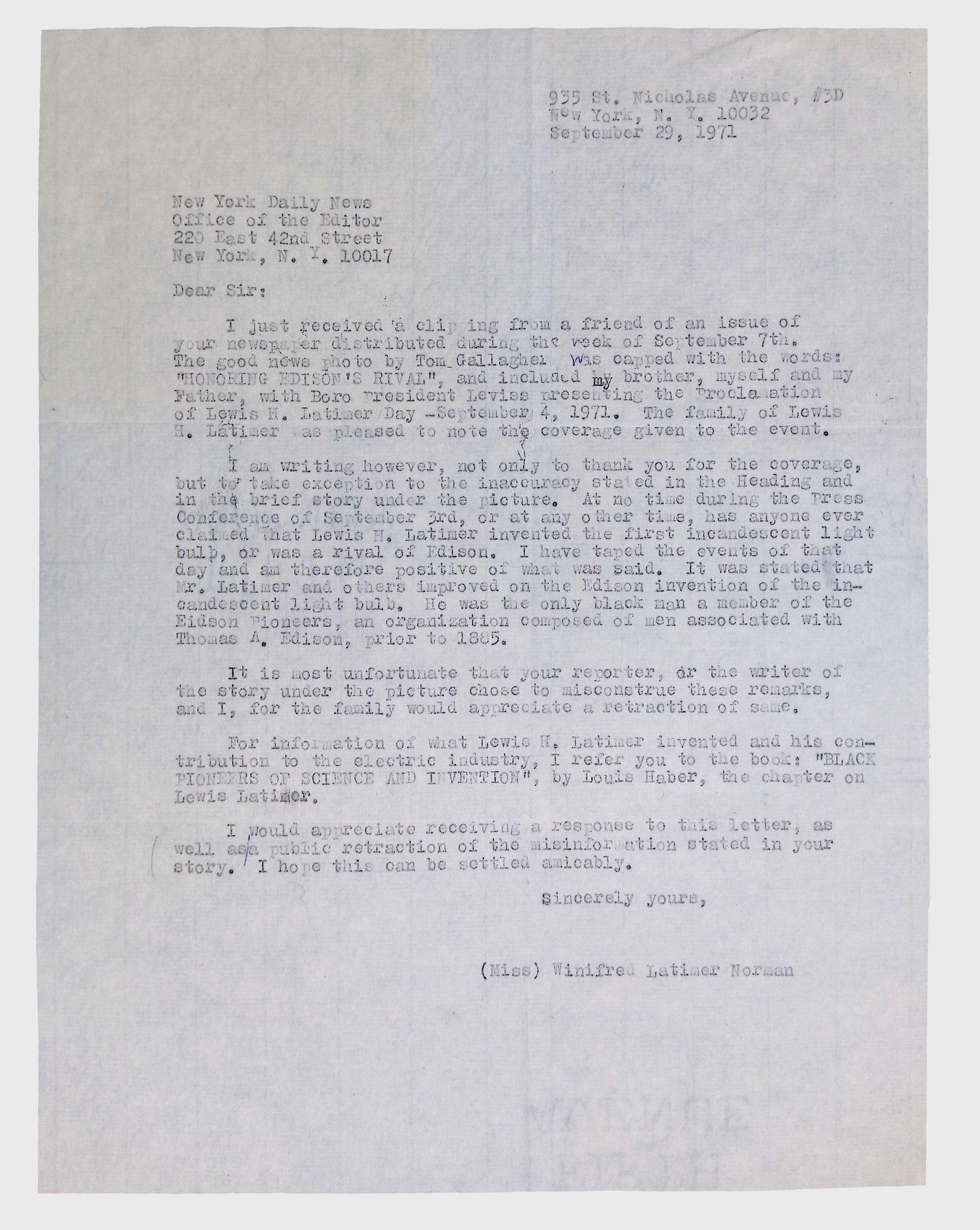 Folder 383/2 is part of Box 383 in the archival collection. It continues the documentation of Lewis Latimer's life, including his work with Edison, his contributions to electrical engineering, and the recognition he received posthumously. The documents reflect both contemporary and historical perspectives on his impact, in the context of campaigns during the 1960s and 1970s to preserve, retrieve, and acknowledge African American history.