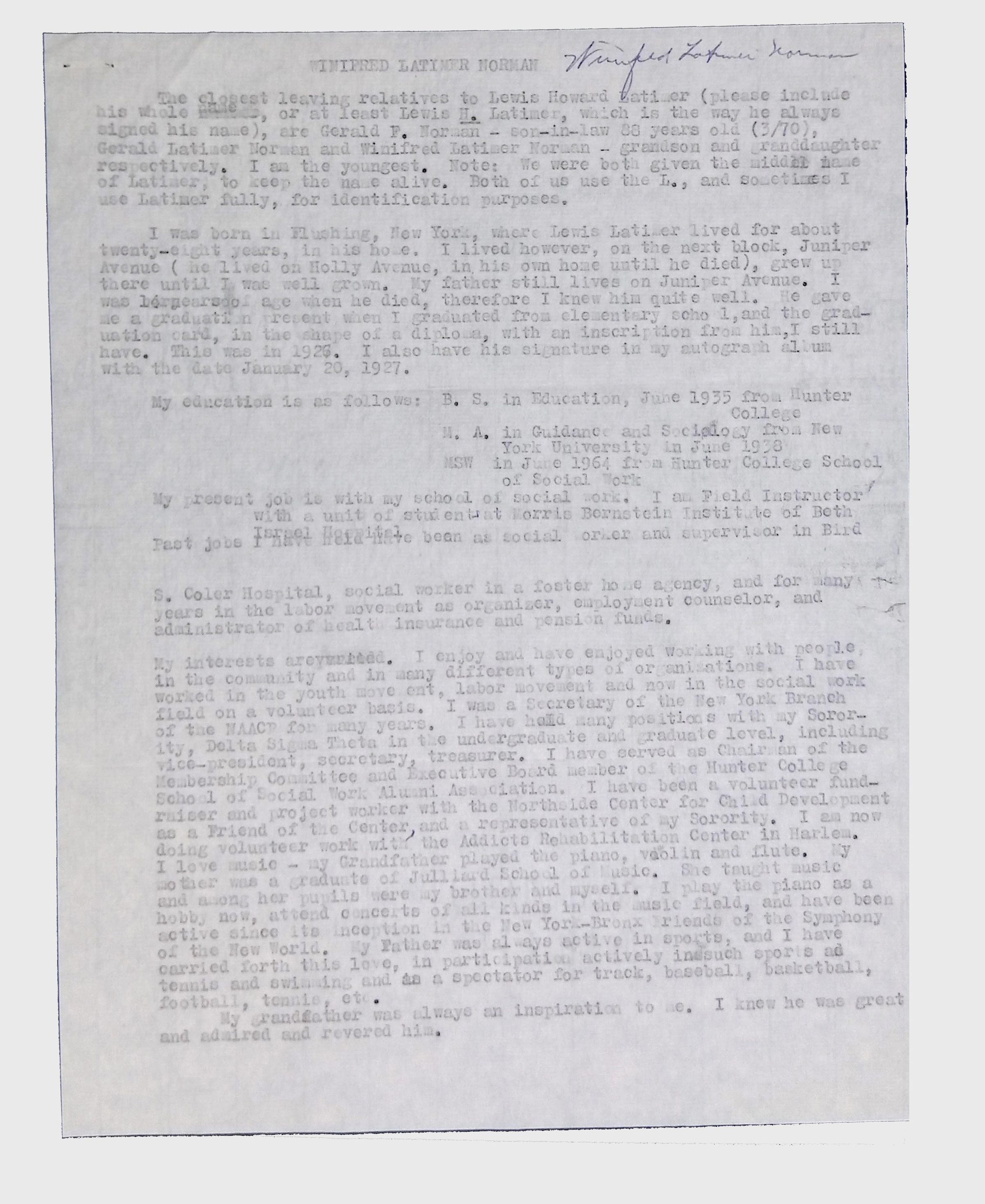 Latimer Family Papers (1870-1996 ) [QPL Full Collection]The Latimer Norman Family Collection (1879-1996) [QPL Subgroup]