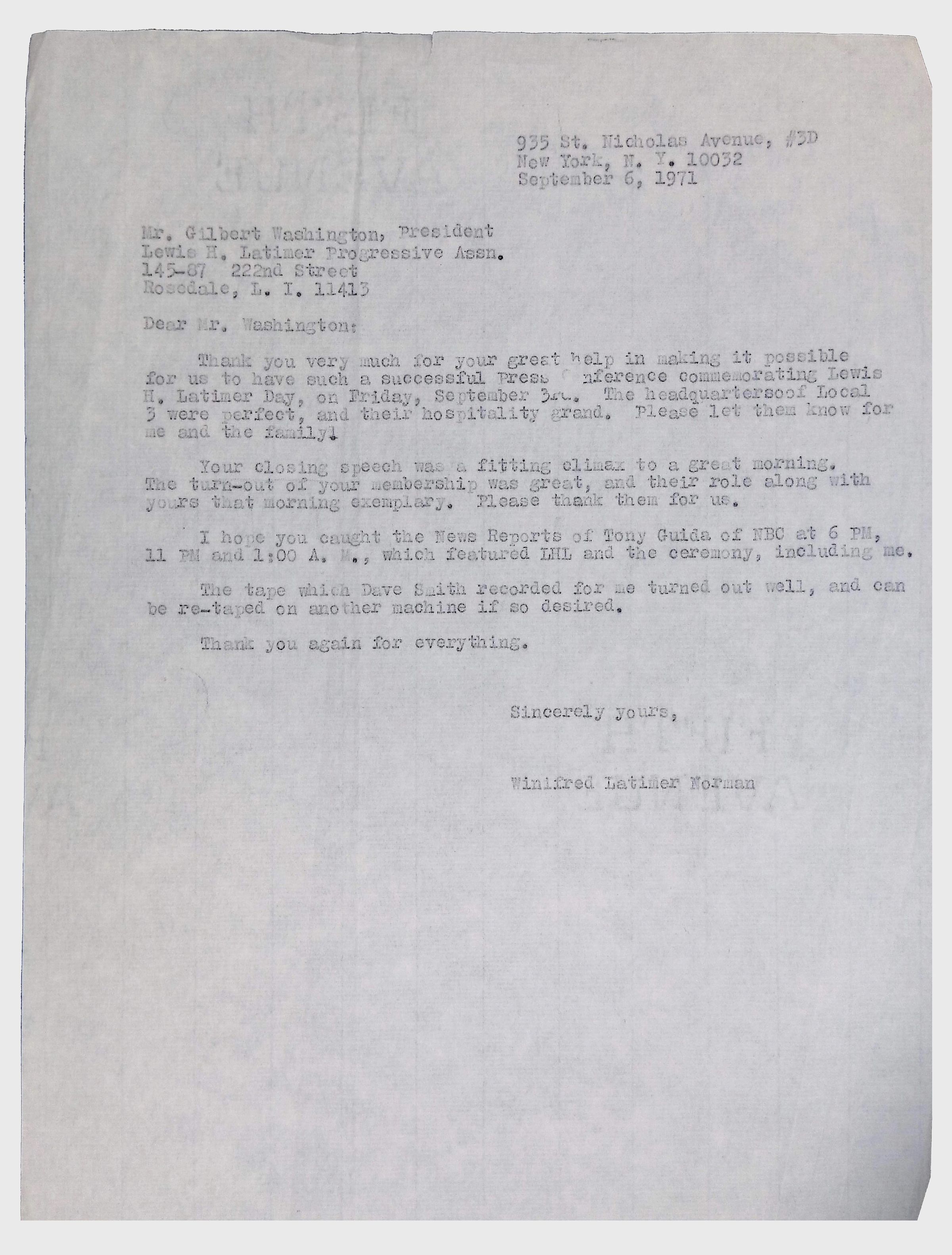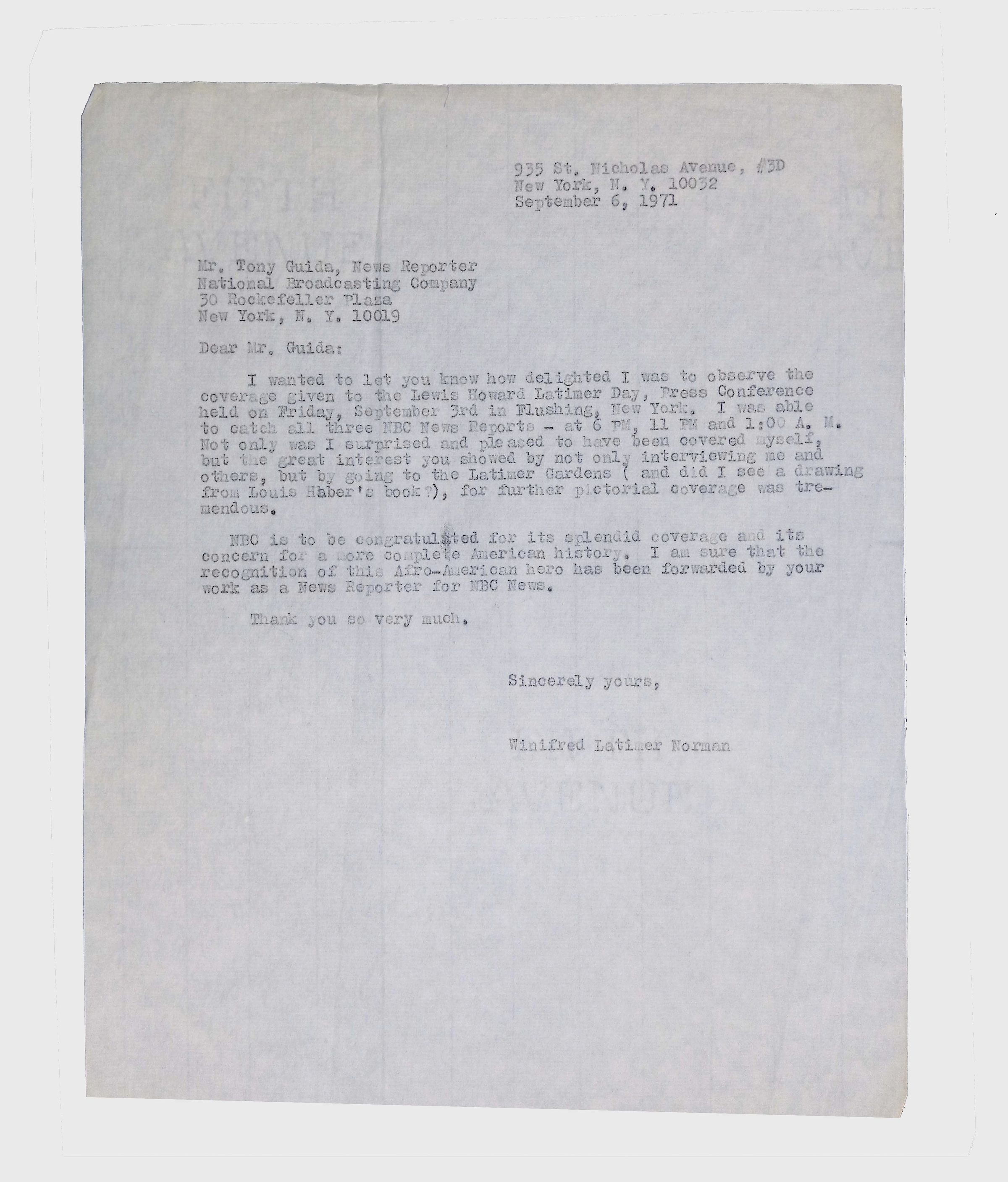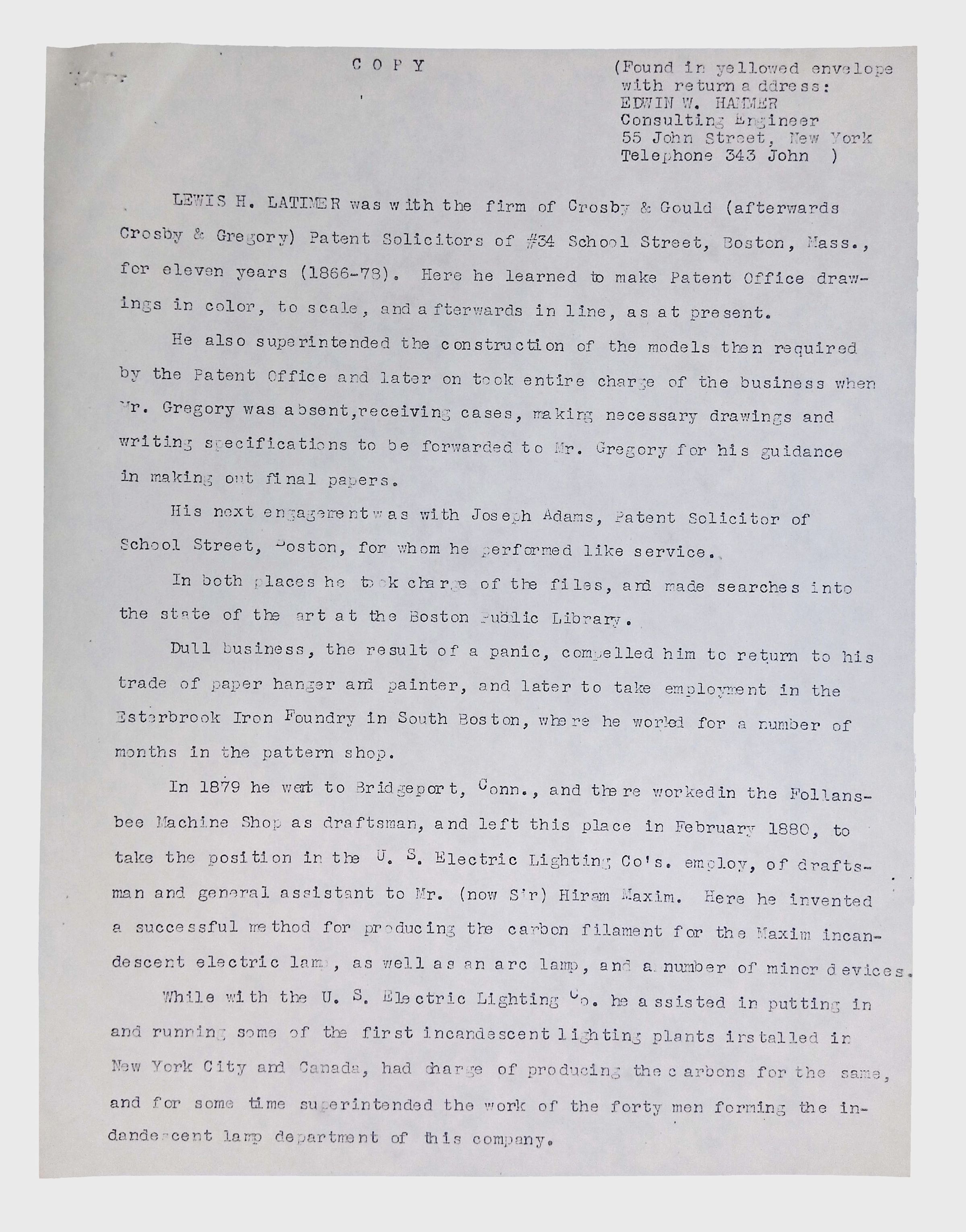 This folder contains various archival records, including reports, newspaper clippings, and organizational documents related to Lewis Latimer. Items highlight his role in the advancement of electrical engineering, institutional recognitions, and public awareness efforts. Some materials discuss exhibitions and events dedicated to his contributions, while others provide biographical insights.