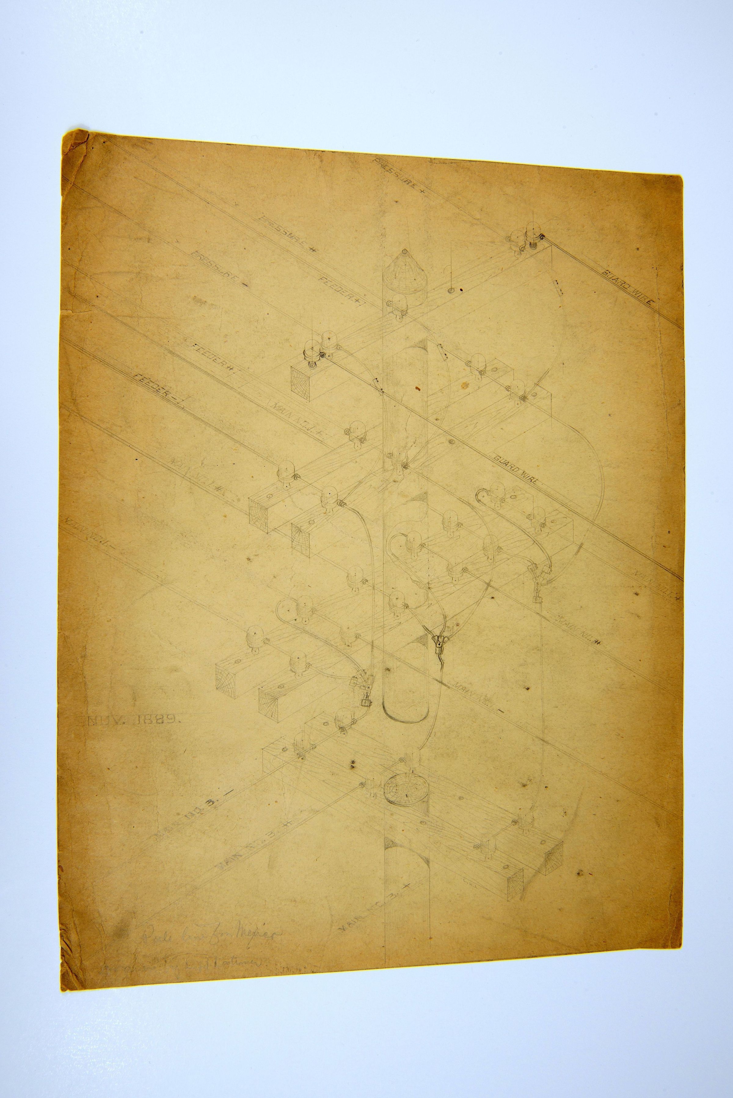 This drawing may be related to Lewis Latimer’s electrical engineering work, potentially showing early wiring diagrams for lighting systems, power distribution, or telecommunication networks. Given Latimer’s contributions to the electrical industry, it is possible this diagram was part of his patents or engineering blueprints.