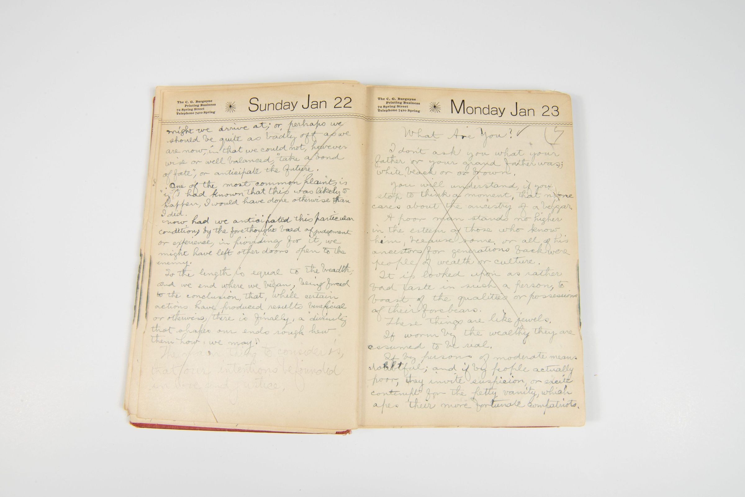 Lewis H. Latimer (1848–1928) was not only an inventor and engineer, but also a poet and writer. He wrote essays, poetry, and personal reflections, many of which were compiled in his later years. The phrase "'It is to Print' Essays" suggests this logbook may have been used to draft articles or essays for publication. This could potentially contain unpublished works or technical writings by Latimer.