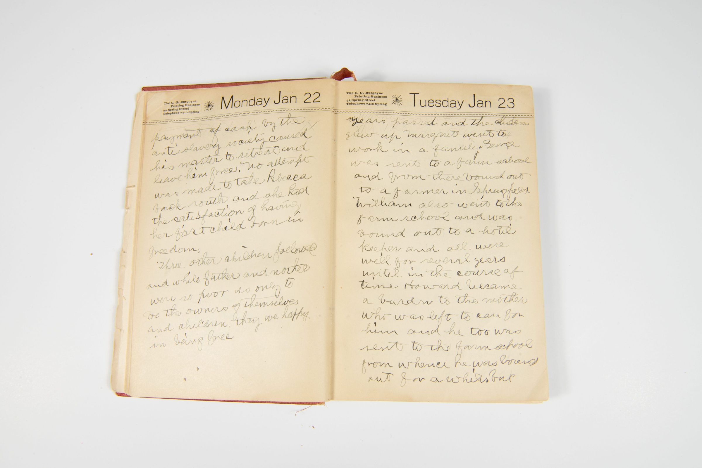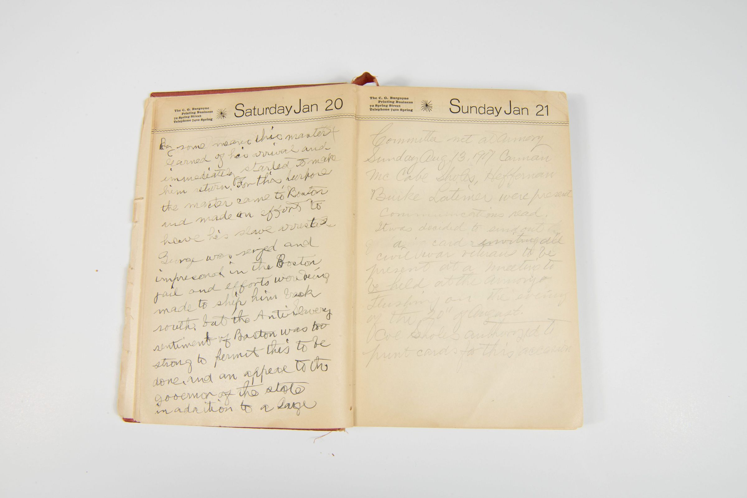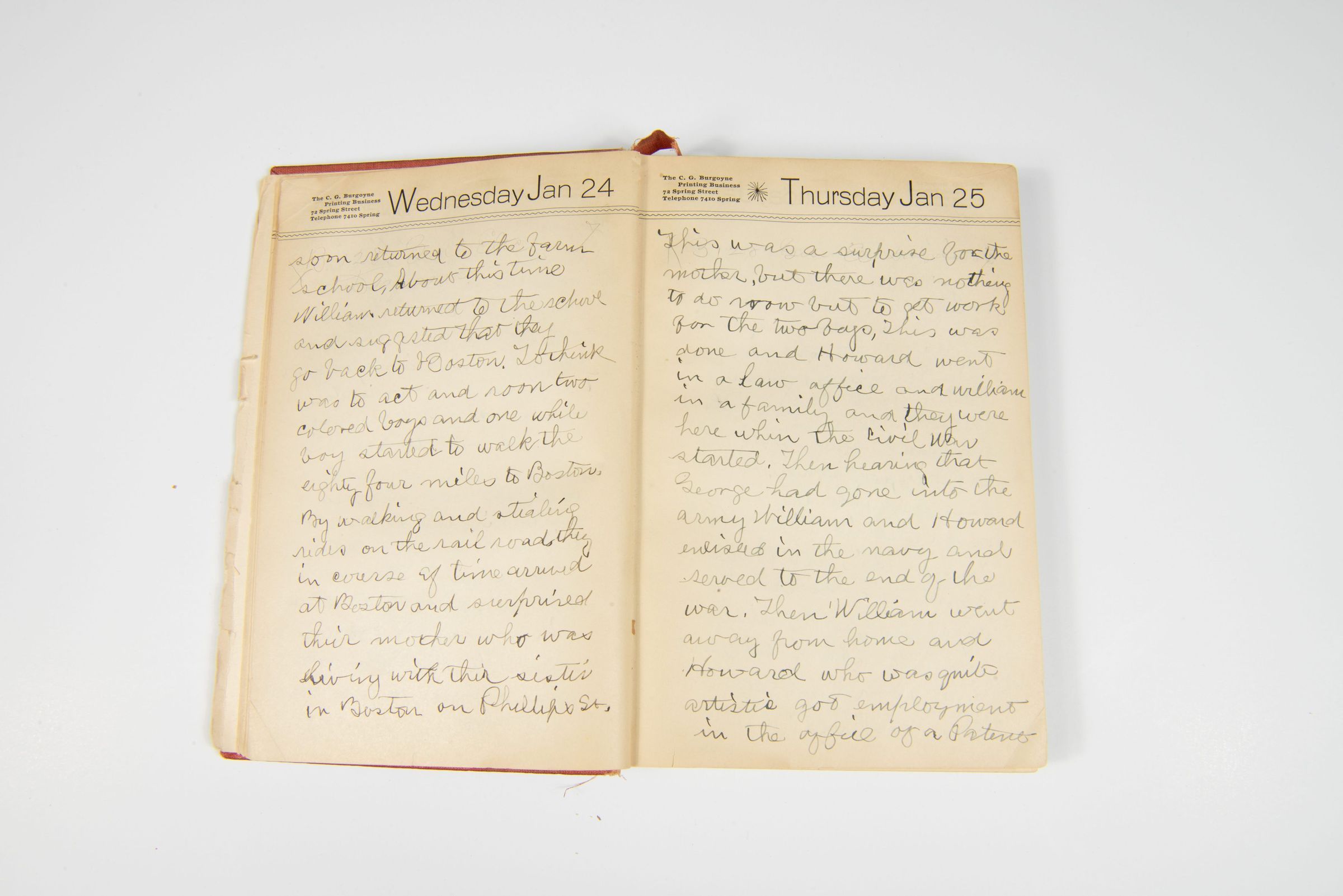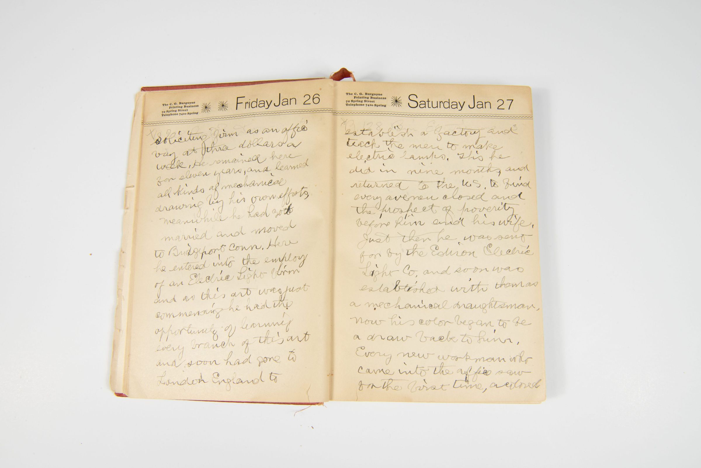This log book is from the early 20th century and provides insight into the daily experiences of the writer. It documents both personal reflections and broader historical moments, potentially making it a valuable historical artifact. It is one of the main surviving sources in which Latimer described the experiences of his parents as fugitives from slavery, and his own biography up to the point when he started working for Thomas Edison’s firm.